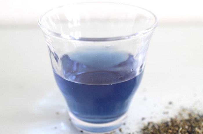 お湯に入れるとあっという間に綺麗なブルーのブレンドティー