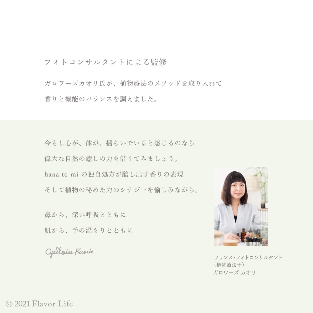 フランスパリを拠点に活動するフィトコンサルタントが香りを調えました。