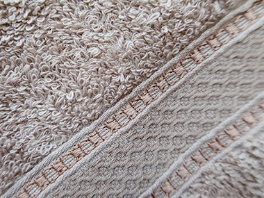 少し大きめのサイズで厚みのある生地です。タオルのヘム部分とボーダー部分の糸の飾りが美しく、上品な雰囲気を醸し出しています。 通常のタオルよりも目が詰まった状態で生地を織り込んでいるため、生地が丈夫で繰り返し洗濯しても風合いが長持ちする高級タオルです。デザイン性、機能性、耐久性に優れているので、教室やサロンでのトリートメント用におすすめのフェイシャルタオルです。