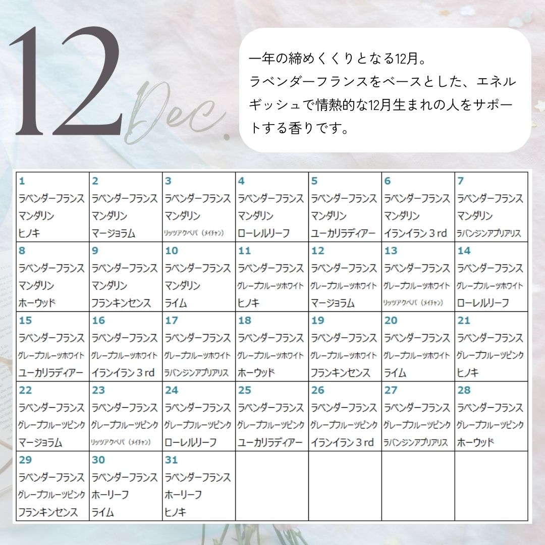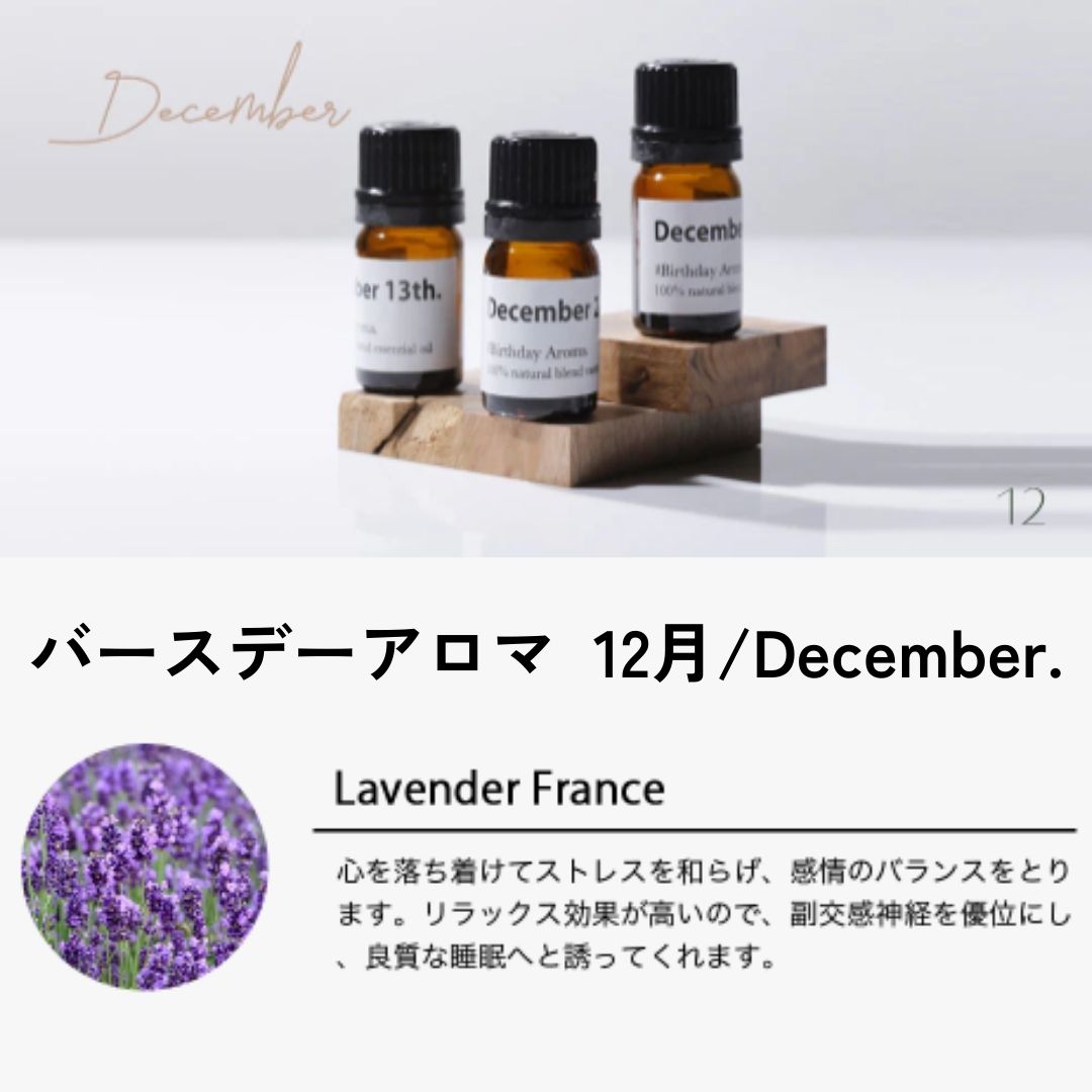 一年の締めくくりとなる12月。ラベンダーフランスをベースとした、エネルギッシュで情熱的な12月生まれの人をサポートする香りです。